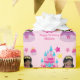 Eine hübsche personalisierte afrikanische Prinzessin Geburtstagsverpackung mit einem hübschen schwarzen kleinen Mädchen in einem Queenenkugel mit rosa Bögen, die vor einer rosa Burg stehend sind. Niedliche Geschenkpackung für ein kleines Mädchen. Fügen Sie den Namen Ihres Kindes unter den Schlossstufen dieses Märchendesigns.