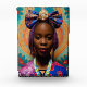 Ein Bild einer afrikanischen Dame mit einem großen Blumenbogen und Medaillons. Dieses Bild wurde von AI mit Blumendesign erstellt.
