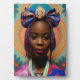 Ein Bild einer afrikanischen Dame mit einem großen Blumenbogen und Medaillons. Dieses Bild wurde von AI mit Blumendesign erstellt.