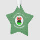 Die rote, schwarze und grüne afroamerikanische Flagge wird von diesem Engel für die Weihnachtsdekoration getragen. Sie fliegt in einem weißen Kreis von quadratischen Quadraten umgeben von einem Hintergrund von grünen quadratischen Quadraten. Über dem Kreis liest CHRISTMAS 202?. Sie können Ihre Wünsche anpassen, indem Sie das Jahr hinzufügen oder durch Ihren Text ersetzen. Unten, ist ein Ort für einen Namen, Ihre oder personalisieren Sie für ein Geschenk von einem Sternschmuck.