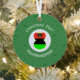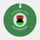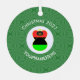 Die rote, schwarze und grüne afroamerikanische Flagge wird von diesem Engel für die Weihnachtsdekoration auf einem Metallschmuck getragen. Sie fliegt in einem weißen Kreis von quadratischen Plätzen, umgeben von grünen quadratischen Plätzen. Über dem Kreis liest CHRISTMAS 202?. Sie können Ihre Wünsche anpassen, indem Sie das Jahr hinzufügen oder durch Ihren Text ersetzen. Unten, ist ein Ort für einen Namen, Ihre oder personalisieren Sie für ein Geschenk.