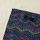 Funky farbenfroher ethnischer Musterdruck aus afrikanisch inspiriertem Muster. orange-blau und schwarz bunt lebendiges Kunstdesign.