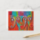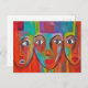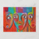 Diese individuell gestaltete Postkarte zeigt ein zeitgenössisches Ölgemälde von drei afrikanischen Frauengesichtern, die in farbenfrohen Pinseltexturen lebhaft bemalt sind.