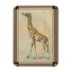 Dieses Kunstwerk wird jedem Reisenden und Tierfreund gefallen. Der Hintergrund stellt die Karte Afrikas dar und es ist ein Bild einer Giraffe darauf. In diesem Bild machen die Ränder es zum perfekten dekorativen Kunstwerk.