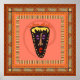 Afrikanische Maske in bunten Rahmen auf braunem Hintergrund
