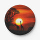 Atemberaubende zurück beleuchtete Fotozusammensetzung der Giraffen und des Rhino silhouettiert gegen die Einstellungssonne.