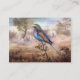 Von einem ursprünglichen Ölgemälde durch Brenda nannte Thour eines bunten Vogels eine afrikanische lila Breasted Rolle, die auf einer Niederlassung mit Elefanten im staubigen Hintergrund sitzt. BezugsFoto durch Dr. Thomas Trainer. Copyright durch Brenda Thour 2006.