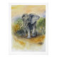 Original Aquarellmalerei von Sandra Gale, eines afrikanischen Elefanten, der unter einer orangefarbenen Sonnenuntergang durch goldene Gräser geht. Ein tolles Design für Naturliebhaber und gefährdete Naturschützer.