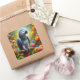 Afrikanischer Graupapagei mit bunten Blume Quadratischer Aufkleber
