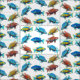 Ursprünglicher Kunstentwurf bunter afrikanischer Pfau Cichlids wie Haplochromis Ahli und andere durch Künstler Carolyn McFann zwei des schnurrenden Katzen-Studios druckte auf Qualitätsgewebe Ihrer Wahl für tropische Aquariumfisch-Ventilatoren.