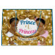 Der afrikanische Prinz oder Prinzessin Gender Reveal Gift Bag Blue, Pink und Gold Glitzer Accent Adorable African Prince mit einer Goldkrone neben einer wunderschönen afrikanischen Prinzessin, die eine Goldkrone auf einem goldenen Rahmen auf einem Glitzer aus Marmor trägt. ©2020 Miss Sassy Party Designs