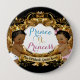 Roter Prinz oder Prinzessin Rosa und Blauer Geschlecht Reveal Button Adorable African Prince mit einer Goldkrone und einem weißen Windeln mit blauen Hausschuhen neben einer schönen afrikanischen Prinzessin, die einen rosa gepanzerten Windeln mit Goldkrone und rosa Hausschuhen auf einem eleganten goldenen Rahmen trägt. ©Miss Sassy Party Designs