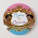 Roter Prinz oder Prinzessin Rosa und Blauer Geschlecht Reveal Button Adorable African Prince mit einer Goldkrone und einem weißen Windeln mit blauen Hausschuhen neben einer schönen afrikanischen Prinzessin, die einen rosa gepanzerten Windeln mit Goldkrone und rosa Hausschuhen auf einem eleganten goldenen Rahmen trägt. ©Miss Sassy Party Designs