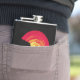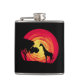 Afrikanische Sonnenuntergang-Illustration mit roter Grunge-Sonne, Giraffe und Silhouette auf schwarzem Hintergrund. Es ist möglich, die Hintergrundfarbe zu ändern und das Design mit Ihrer Wahl zu ergänzen.