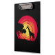 Afrikanische Sonnenuntergang-Illustration mit roter Grunge-Sonne, Giraffe und Silhouette auf schwarzem Hintergrund. Es ist möglich, die Hintergrundfarbe zu ändern und das Design mit Ihrer Wahl zu ergänzen.