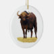 Foto eines afrikanischen Wassergrößengleichbüffels stehend auf einem Flecken des getrockneten Grases