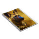 Ein digitales Bild, das Hyperrealismus mit kühner, zeitgenössischer Abstraktion verbindet. Dieses faszinierende Porträt eines afrikanischen Wildhundes zeigt einen harmonischen Zusammenprall von lebhaften Farben, tiefer Blues, goldenen Ochsen und elektrischen Grüntönen, die jedem Fellstrand und jedem Schatten Leben einhauchen. Die strukturierten, beinahe kubistischen Pinselstriche verleihen Tiefe und Bewegung und verwandeln ein einfaches Profil in eine Darstellung von roher Schönheit und emotionaler Intensität.