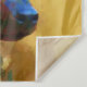 Ein digitales Bild, das Hyperrealismus mit kühner, zeitgenössischer Abstraktion verbindet. Dieses faszinierende Porträt eines afrikanischen Wildhundes zeigt einen harmonischen Zusammenprall von lebhaften Farben, tiefer Blues, goldenen Ochsen und elektrischen Grüntönen, die jedem Fellstrand und jedem Schatten Leben einhauchen. Die strukturierten, beinahe kubistischen Pinselstriche verleihen Tiefe und Bewegung und verwandeln ein einfaches Profil in eine Darstellung von roher Schönheit und emotionaler Intensität.