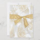 Ein wunderschöner Baby in seinem taufenden Anzug mit goldener Kreuzung und goldenem Kreuz. Der Hintergrund für die Einladung ist weißes Satin, goldenes filigranes, goldfarbenes und silbernes Glitzer und Bugverzierung. Die Rückseite ist mit goldenem Blume-Muster und Goldband auf weißem Satin-Hintergrund geschmückt.