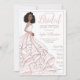 Herrliche Glam Braut in Hochzeitskleid Braudusche Einladung.