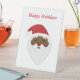 Afrikanisches amerikanisches Santa Pedestal-Zeichen. Auf den Tischen, auf den Tischen des Abendessens oder zum Party zu Weihnachten. Text bearbeiten, um Wörter zu ändern.