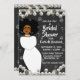 Diese elegante Brautdusche in Schwarz und Weiß mit Perlen auf schwarzem Hintergrund und einer Afroamerikanerin in weißem Kleid. Diese Einladung vermittelt einen ersten Eindruck von Stil und Eleganz für Ihre große Veranstaltung.