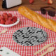 Afrikanisches Mudcloth Textil mit geometrischen Mu Pappteller