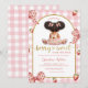 Afro African Girl Pink Bow Strawberry Invitation, Someone Berry Sweet Is On The Way Baby Shower Invite, Gingham Baby Shower