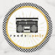 Die Hip Hop Baby Shower Vibe der Urban Retro 90's bietet einen bezaubernden, schüchternen Afro American Baby Boy. Moderner weißer Backstein. Schwarz, Weiß und Gold. Akzente und Boombox der Kartei. Passen Sie sich mit dem Namen von Mutter und Vater an! ©2022 Miss Sassy Party Designs