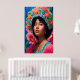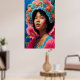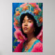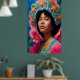 Ein Bild einer afro Lady mit Seesternhut. Dies ist ein künstlerisches Kunstwerk mit Blumenmotiv.