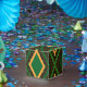 Afro Pop vermischt afrikanische Traditionen und Drucke für ein neues, einzigartiges grafisches Erscheinungsbild. Dieses geometrische Design zeichnet sich durch eine grüne Grundfarbe aus, ergänzt durch schwarz-gelb-orange Akzente.