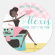 Super niedlich "aus meiner Küche" oder "aus der Küche von" Geschenktipps Aufkleber mit Retro-Stil afrikanische Hausfrau mit einer Schürze, kleines schwarzes Kleid und Ofen Mitt, sitzen auf ihrem Ofen, gerne kochen oder backen. Phantastische Verpackungs-Etiketten für Ihre hausgemachten Lebensmittel, Süßigkeiten und Leckereien. Ändern Sie die Hintergrundfarbe von Rosa zu Ihrem Favoriten, ändert auch ihren Ofen Mitt, Schürze und Handtuchfarbe!