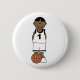 Ein afrikanischer amerikanischer Jungenbasketballspieler mit einem weißen und schwarzen Jersey und Basketball auf Einzelteilen, die Sie mit einem Namen und einem Text-Sprichwort besonders anfertigen können.