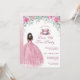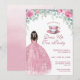 Veranstalten Sie eine magische und inklusive Feier mit dieser Einladung zur Tee-Party einer afroamerikanischen Prinzessin. Dieses Design zeigt ein atemberaubendes Wasserfarben-Prinzessinnenkleid mit einem schimmernden Pseudo-Glanz-Effekt und eine Prinzessin mit natürlichem Haar. Geschmückt mit eleganten rosa Rosen und einer stilvollen Teetasse ist es die perfekte Wahl für einen märchenhaften königlichen Geburtstag oder eine zauberhafte Gartenparty.