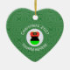 Die rote, schwarze und grüne afroamerikanische Flagge wird von diesem Engel für die Weihnachtsdekoration getragen. Sie fliegt in einem weißen Kreis von quadratischen Quadraten umgeben von einem Hintergrund von grünen quadratischen Quadraten. Über dem Kreis liest CHRISTMAS 202?. Sie können Ihre Wünsche anpassen, indem Sie das Jahr hinzufügen oder durch Ihren Text ersetzen. Unten, ist ein Ort für einen Namen, Ihre oder personalisieren Sie für ein Geschenk von diesem herzförmigen Keramik Ornament.