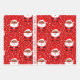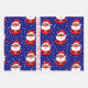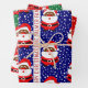 Niedlicher afroamerikanischer Weihnachtsmann und Schneeflocken Frohe Weihnachtsfeiertage Packpapier Blätter. Es zeigt einen skurrilen schwarzen Weihnachtsmann und Schneeflocken auf blauem, rotem und grünem Hintergrund. Ein Streifen mit dem Text "Frohe Weihnachten".
