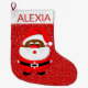 Niedlicher afroamerikanischer Weihnachtsmann und Schneeflocken Weihnachtsfeiertag Strumpf personalisiert mit Namen. Es zeigt einen skurrilen schwarzen Weihnachtsmann und Schneeflocken auf rotem Hintergrund und eine weiße Band mit Namen.