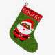 Niedlicher afroamerikanischer Weihnachtsmann und Schneeflocken Weihnachtsfeiertag Strumpf personalisiert mit Namen. Es zeigt einen skurrilen schwarzen Weihnachtsmann und Schneeflocken auf grünem Hintergrund und eine rote Band mit Namen.