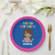Phantastische Kinder Schwimmbad Party Geburtstagszeitung Teller für ein afroamerikanisches Kind im Sommer. Ein farbenfroher, fröhlicher Pop und ein hübsches schwarzes Schwimmmädchen im Wasser. Dieses niedliche Dekor ist für ein Party mit Kinderbecken konzipiert.