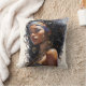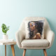 Dieses Kissen zeigt die bezaubernde Schönheit einer afrozentrischen Frau, mit verziertem Schmuck und Kopftuch, Set vor Aquarellfarben. Ein Statement-Stück für jeden Raum, es feiert Schönheit und Kultur.