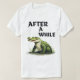 Funny crocodile pun design featuring "After a while" with bold reptile graphic. Perfect for reptile lovers, pun fans, and anyone who enjoys playful humor.