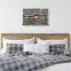 Fresh raindrops cling to a slender red branch, suspended against a soft, blurred background. The simple composition highlights texture, light, and the quiet detail of a moment after rain.