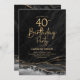 Schwarz und Gold sind 40 Jahre alt Party Einladung. Elegantes modernes Design mit Aquarellfarben-marmorgeode Hintergrund, Imitate Glitzer Gold und Typografie Skript-Schriftart. Die trendige Einladungskarte eignet sich perfekt für eine stilvolle Damenfeier. Gedruckte Zazzle Einladungen oder Sofortdownload digitalen druckbaren Vorlage.