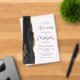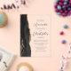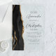 Die links Seite dieses eleganten, modernen Hochzeitseinladens besticht durch einen schwarzen Aquarellrahmen, der mit vergoldetem Imitat bestickt ist. Der anpassbare Text kombiniert Skript und serifenlose Schriftart in Holzkohlegrau auf einem transparenten Hintergrund.