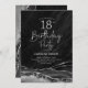Schwarz-Silber-Agate 18. Geburtstagsfeier Einladung. Elegantes modernes Design mit Aquarellfarben-marmorgeode Hintergrund, Imitate Glitzer Silber und Typografie Skript-Schriftart. Die trendige Einladungskarte eignet sich perfekt für eine stilvolle Damenfeier. Gedruckte Zazzle Einladungen oder Sofortdownload digitalen druckbaren Vorlage.