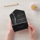 Die links Kulisse dieser eleganten, modernen und einladenden Hochzeitseinladung und der UAWG mit einem schwarzen Aquarellrand besticht durch Imitate mit silberfarbenem Glitzer. Der anpassbare Text kombiniert silbergraue Handschrift, Kupferplatte und kursiv Schriftart auf einem schwarzen Hintergrund. Die Rücksendeadresse erscheint auf der Außentafel und auf der Rückseite der abnehmbaren RSVP-Karte in silbergrauem Text auf schwarz massiv.