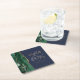 Dieser elegante, moderne Hochzeitsfest-Untersetzer besticht durch ein smaragdgrünes Aquarell-Dekor mit vergoldetem Imitat-Glitzer. Der goldfarbene Text auf marineblau-blauem Hintergrund lässt sich leicht anpassen, wobei die Namen der Braut und des Bräutigams in handschriftlicher Kalligraphie über einen großen Ampersand verteilt sind.