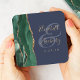 Agate Emerald Green Gold Script Navy Blue Wedding Rechteckiger Pappuntersetzer