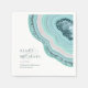 Nicht alle Hochzeitsdesigns sind gleich. Die asymmetrische Gestaltung einiger der Stücke in diesem bemerkenswerten Set beweist, dass das eine gute Sache ist! Die hier gezeigte, koordinierende Hochzeitspapierserviette weist einen Eckakzent mit gewellten Farbbändern in kontrastierenden Farbtönen von aquamarinem Blau und Rosa aus, die um einen glitzernden Kristalleffekt herum einen Geode/Agate bilden. Fügen Sie einfach Ihre Namen, Ihr Hochzeitstag und Ihre persönliche Dankeschön-Nachricht mit dem bereitgestellten Template hinzu. Suchen Sie ID647 um alle Koordinaten in diesem Set zu sehen.