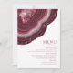 Nicht alle Hochzeitsdesigns sind gleich. Die asymmetrische Gestaltung der Stücke in diesem auffallenden Hochzeitsfest-Set beweist, dass das nicht schlecht ist! Weiche Farbbänder in den Farben Bordeaux bis Weich-Rosa und Grau mit einer Mitte glitzernden Kristalls bilden einen geode/agate Akzent auf den meisten Teilen des Set. Die Hochzeitskarte 'Menü', die hier gezeigt wird, enthält die oben und eine Vorlage, um Ihre passenden Hochzeitsmenü-Auswahl hinzuzufügen. Auf der Rückseite können Sie auch die Namen der Braut und des Bräutigams und das Hochzeitstag hinzufügen. Suchen Sie ID647 um alle Koordinaten in diesem Set zu sehen.